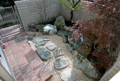 今回は和室からの眺めを重視して石組みに仕立てました。