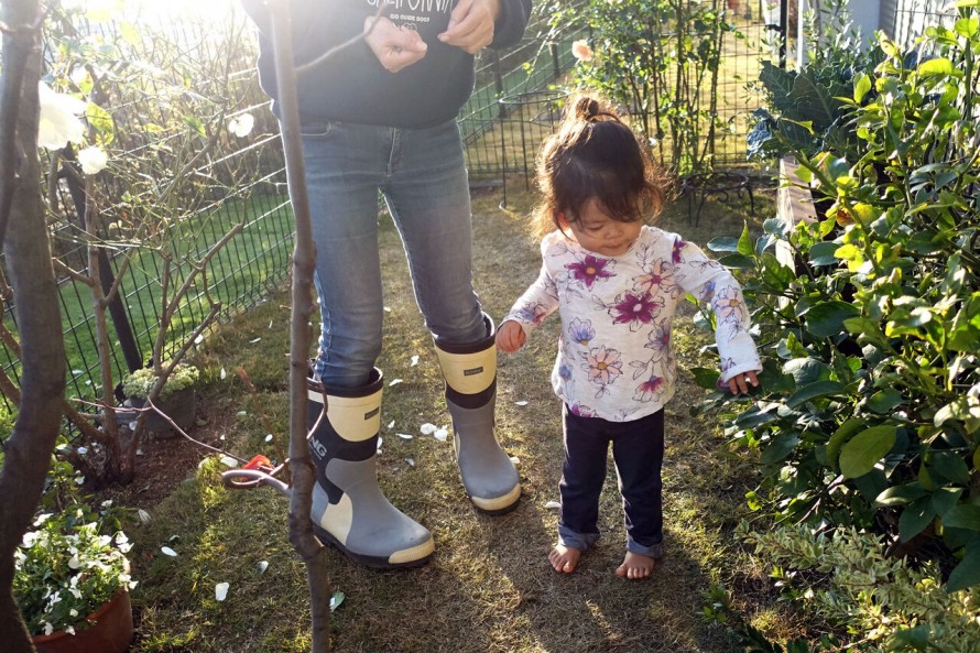 大人たちもバラ咲く庭へ。昨年に引き続きとても冬とは思えない暖かな午後でした。